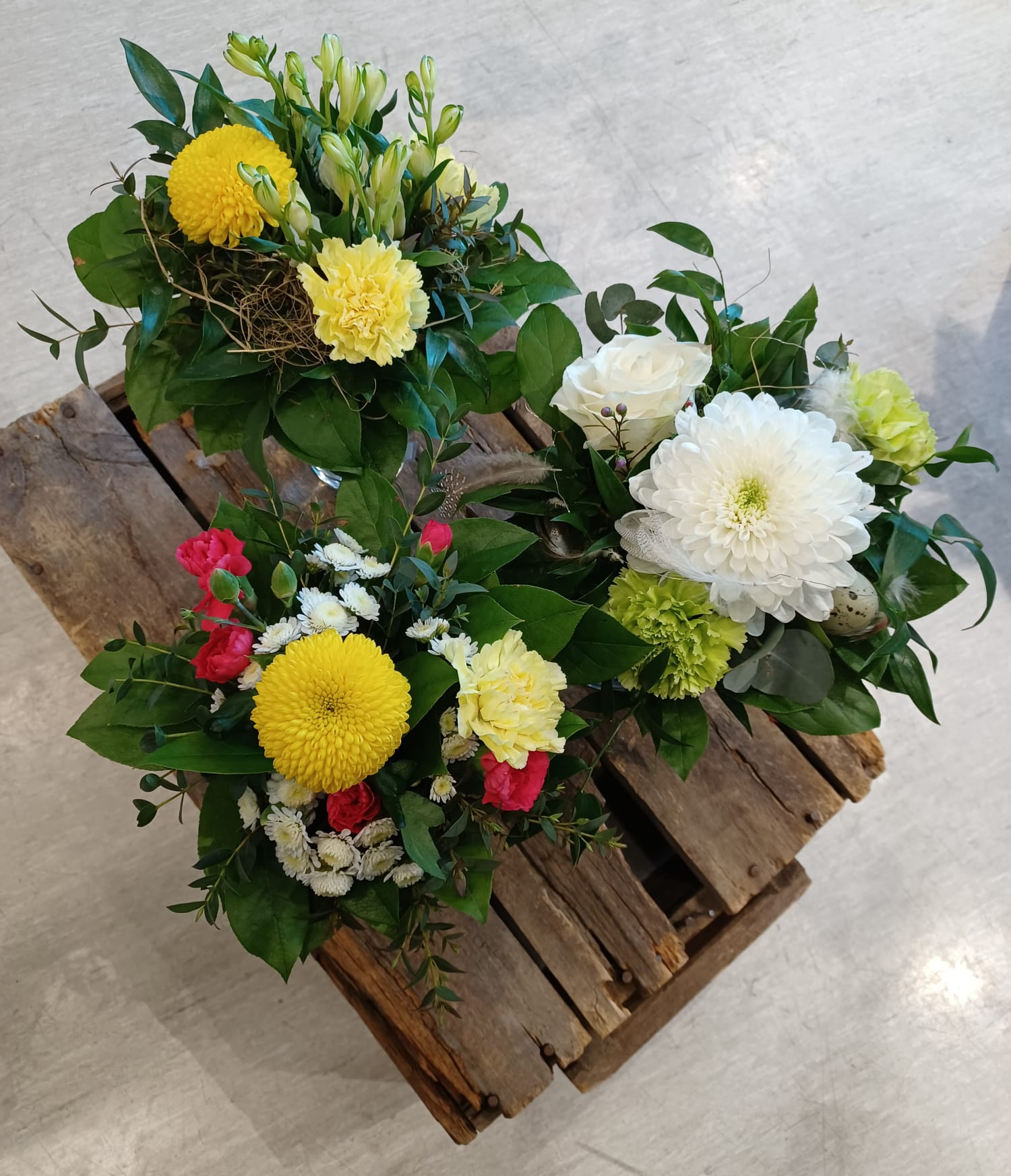 Hautajaisten järjestäjä hankkii usein myös arkkukoristeen ja muistotilaisuuden pöytäkoristeet. Mikäli hautajaisjärjestelyt ovat meidän kauttamme, toimitamme hautajaiskukat paikan päälle veloituksetta.